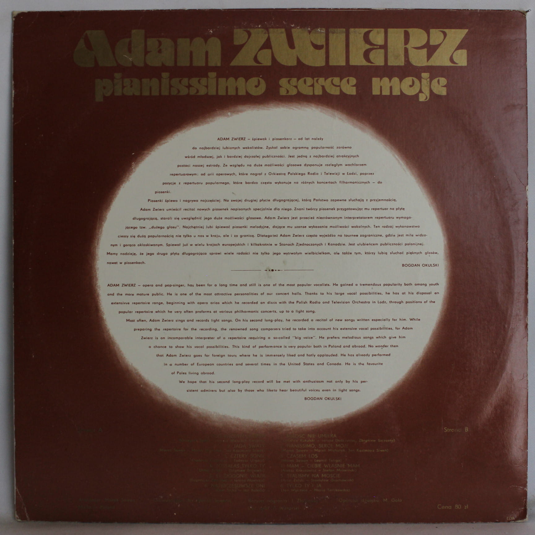 Adam Zwierz Pianissimo Serce Moje LP SX1626 good